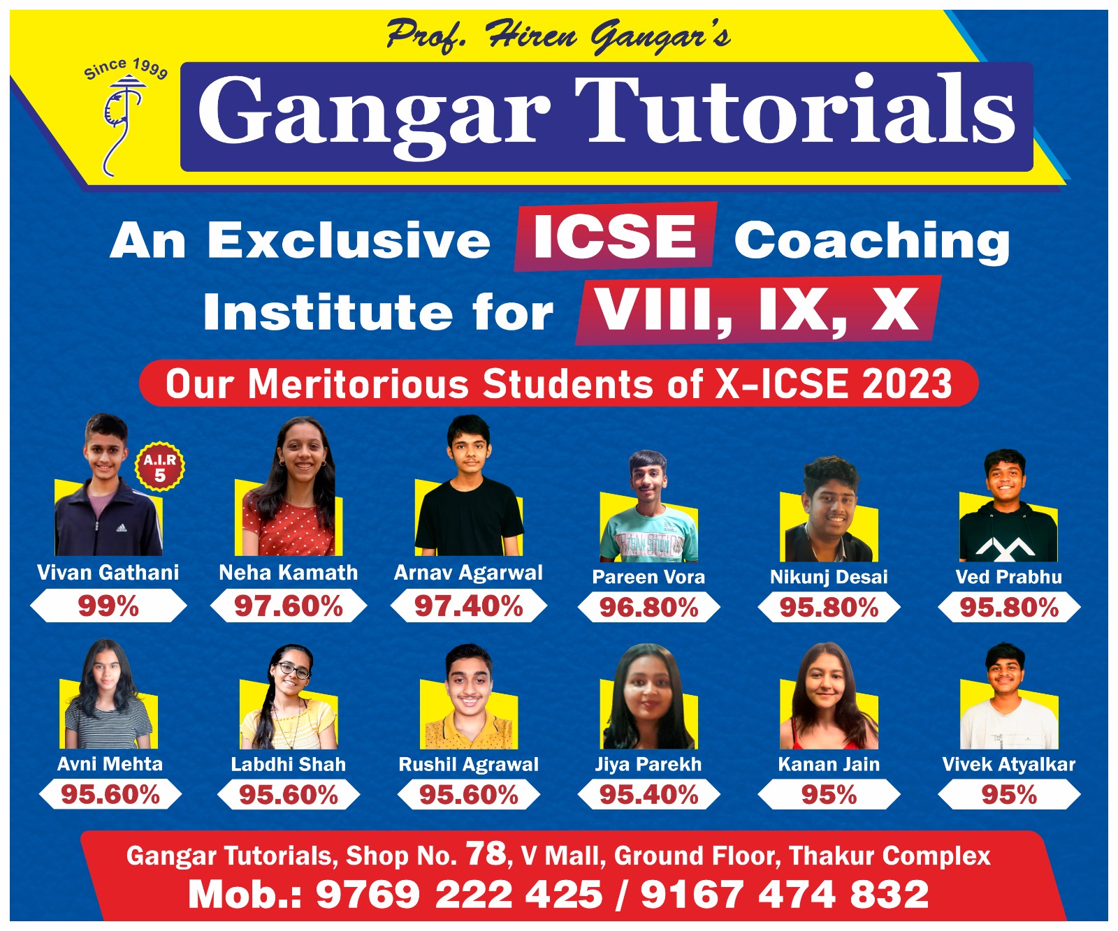 • One of the best tutorials in Kandivali. Teachers know you in and out. They bring the best out of us and it really reflects our result. Thank you Hiren Sir & Alpa miss for brightening our future. We loved every bit and created lot of memories.